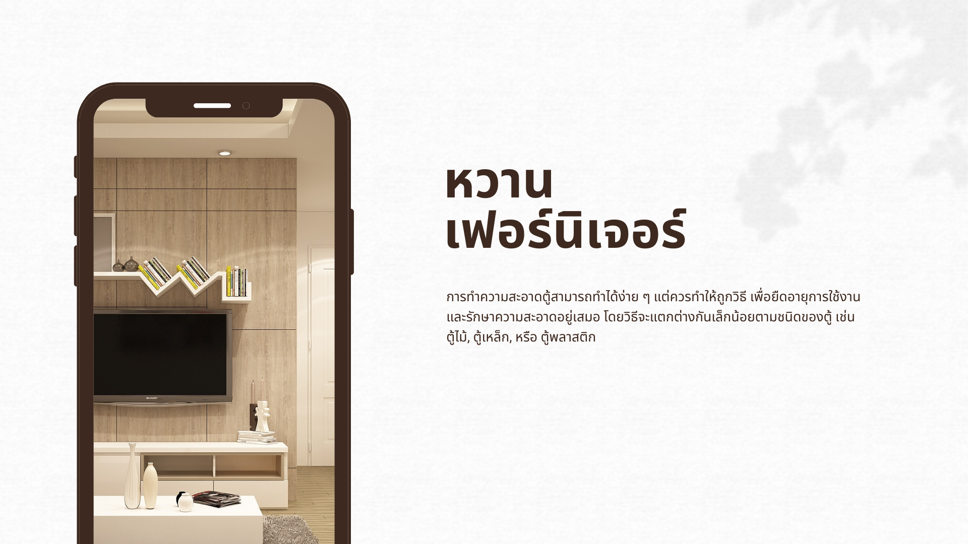 บิดผ้าให้หมาดก่อนเช็ด เพื่อป้องกันไม่ให้น้ำซึมเข้าเนื้อวัสดุ (โดยเฉพาะตู้ไม้)