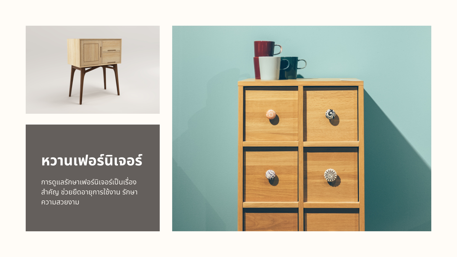 ใช้ น้ำยาทำความสะอาดเฉพาะชนิด ให้เหมาะกับวัสดุของเฟอร์นิเจอร์
